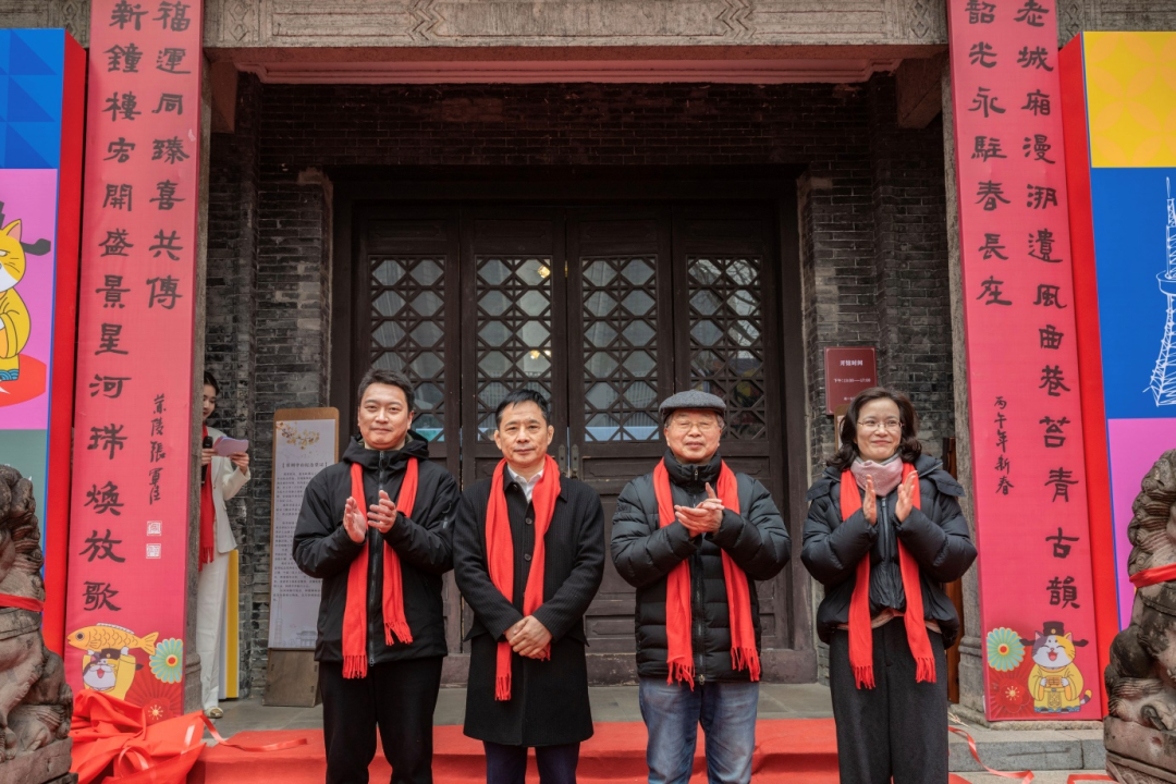 活动现场,常州市原政协副主席、市政协书画社会长、市书协名誉主席朱剑伟,民革常州市委会专职副主委罗军,钟楼区委宣传部常务副部长吴怀君,钟楼区委统战部副部长、区民宗局局长眭伟敏共同为“春满老城厢·福至新钟楼”——中山堂春联揭联,给大庙弄带来马年新春新貌。