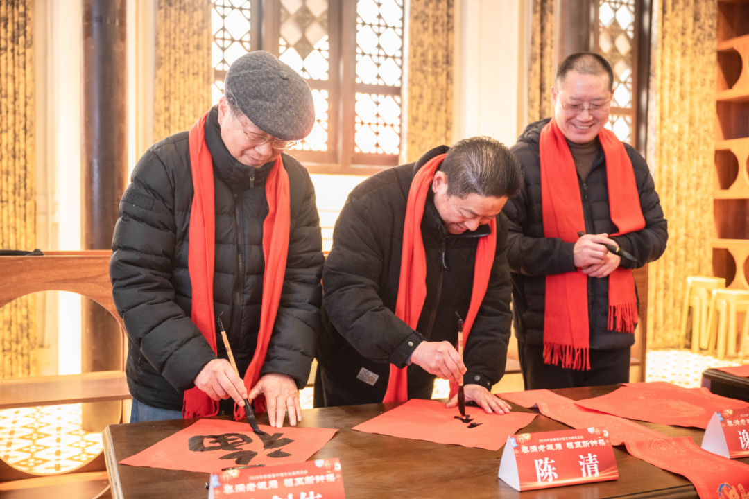 搭起长桌,铺开红纸,来自民革常州市中山书画院、钟楼区书法家协会、市书协企业家分会、市书协新媒体分会的20余位书法家挥毫泼墨,下笔行云流水,或遒劲有力,或飘逸灵动,一幅幅寓意吉祥的春联、一张张饱含温情的“福”字,为参加新春庙会的居民群众送去新春祝福。