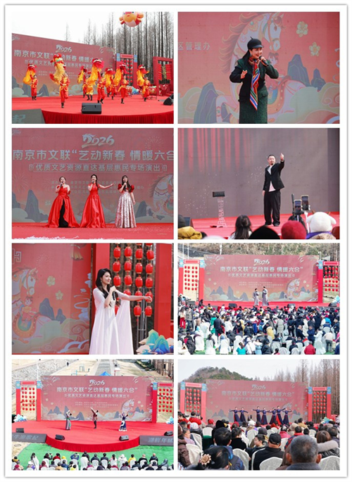 2026年1月31日下午,六合区金牛湖畔欢声阵阵、暖意融融。由南京市文联、六合区委宣传部共同主办,市戏剧家协会、市音乐家协会、市舞蹈家协会、市摄影家协会、市书法家协会、市杂技家协会,六合区文联、金牛湖旅游度假区管理办承办的“艺动新春 情暖六合”优质文艺资源直达基层惠民专场演出暨文艺志愿服务活动在此举行。活动通过专场演出与文艺志愿惠民服务相结合的形式,为当地群众送上一场丰富多彩的新春文化盛宴,正式拉开市文联“艺动新春”系列惠民活动的序幕。