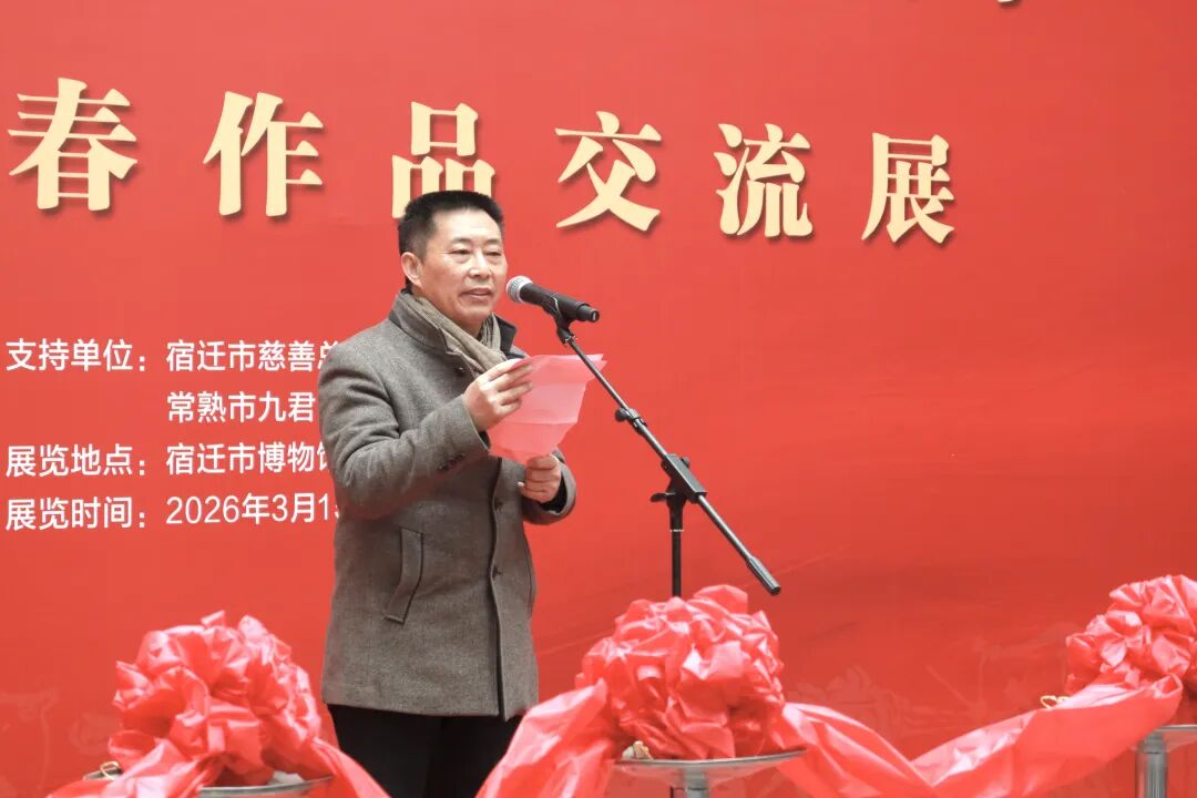 臧成贤主席表示,此次展览为徐宿两地美术交流搭建了重要平台,期待以笔墨为纽带,深化两地艺术互学互鉴,拓宽创作视野,共同传承楚风汉韵文脉,助力两市美术事业持续繁荣发展。