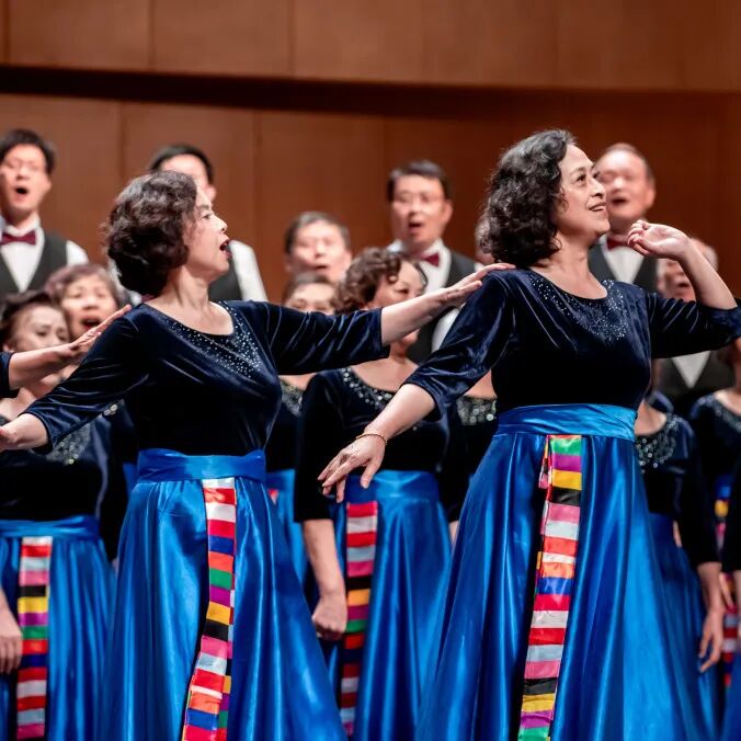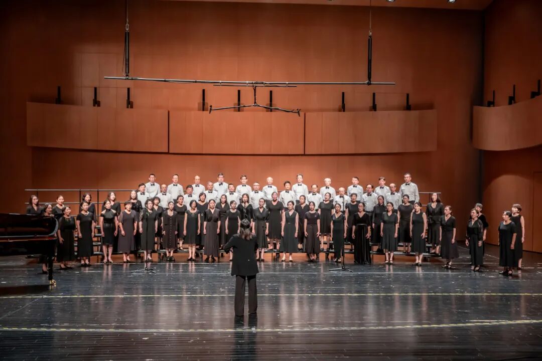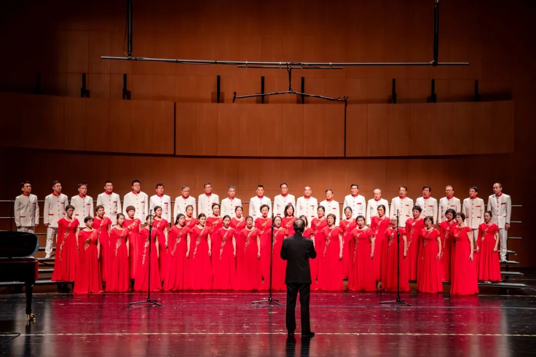 音乐会演出曲目涵盖《松花江上》《我和我的祖国》《保卫黄河》《天耀中华》等二十首经典与原创作品,充分展现了合唱艺术的独特魅力和蓬勃活力。演出最后,所有参演合唱团与现场观众全体起立,共同高唱《歌唱祖国》,将现场气氛推向最高潮。