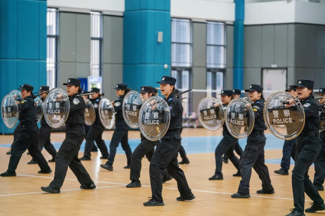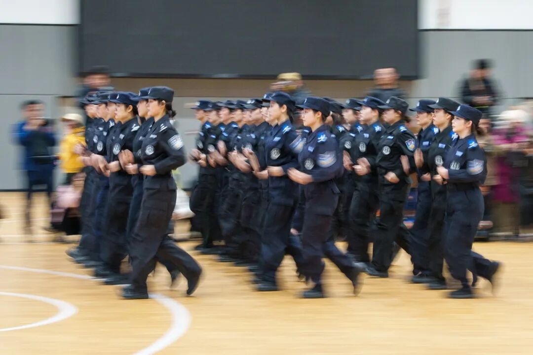 在巡特警支队训练馆内,30名身着藏蓝色警服的女队员们排成三列,随着教官的指令先后进行队列训练和行进表演。摄影家们用镜头捕捉这些“警花”在柔美娇容下那份守护平安的坚毅初心。