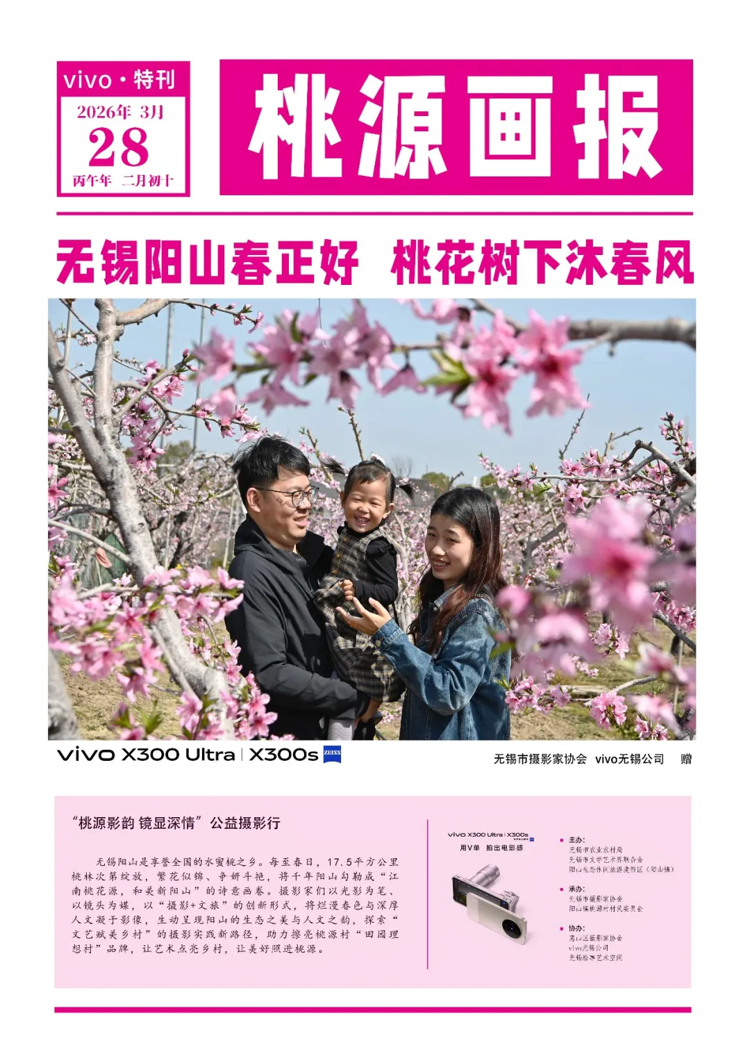 活动现场,《桃源画报》特刊“创刊”,摄影家们为闻讯而来的村民和游客免费拍摄照片。镜头前,有牵手漫步的银发夫妻,有怀抱稚童的三代同堂,有结伴踏青的闺蜜好友。现场立即印制成设计精美、图文并茂的“报纸”,赠送给村民、游客。“报刊”刊登的不仅有刚拍下的精彩瞬间,更融入了阳山桃花的春日元素,成为一份独一无二的影像框和纪念品。