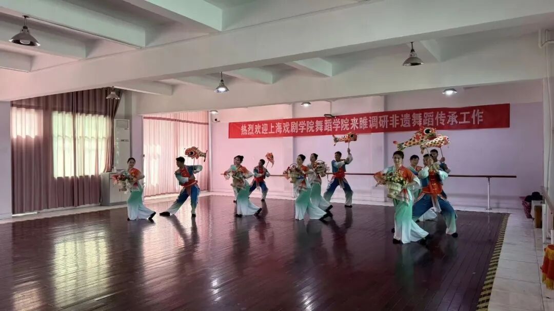 徐州市舞蹈家协会副主席杨忠宁,上海戏剧学院调研组周蓓副院长、第二党支部书记王栎、民间舞教师何力扬、丁琦睿,睢宁县舞蹈非遗传承人荣杰、荣戈等参加了本次调研活动。