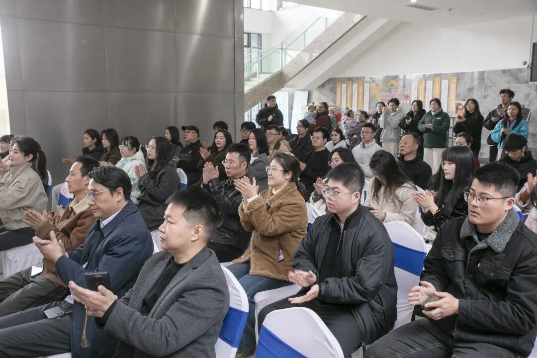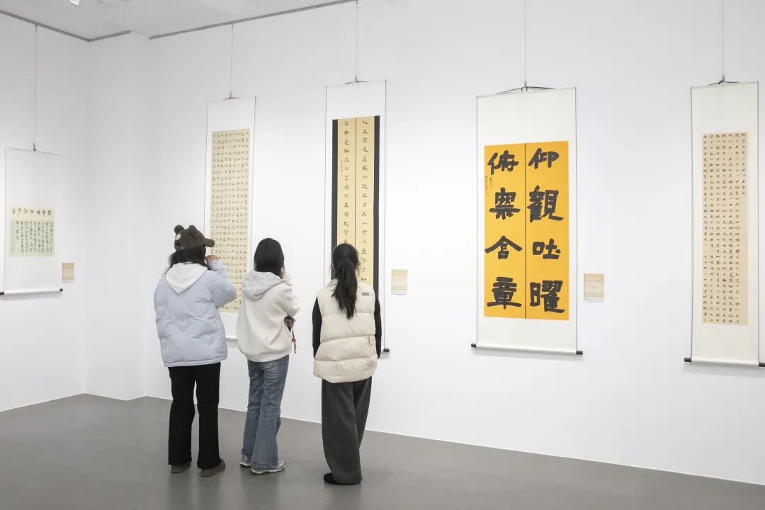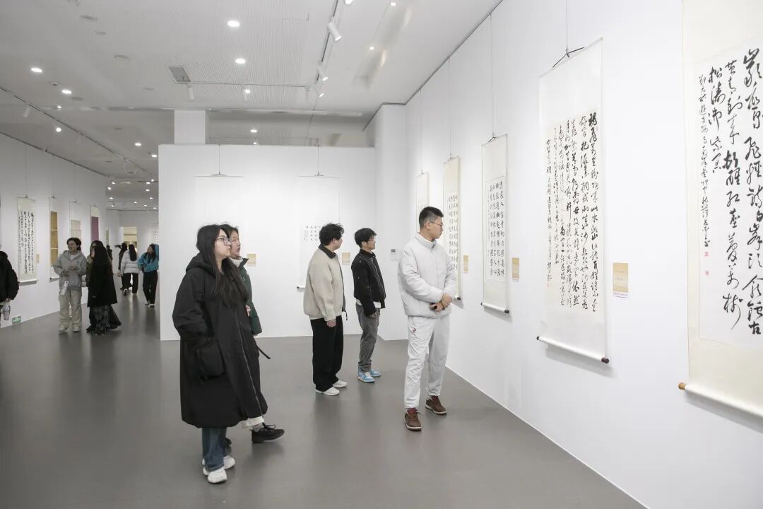 市书法家协会、市新文艺群体联合会、丹徒区文联、丹徒区美术馆、镇江新联会等单位负责人,以及参展作者、亲友团和镇江高专艺术学院学生近150人齐聚现场,共赏笔墨风华,共话青春艺术。