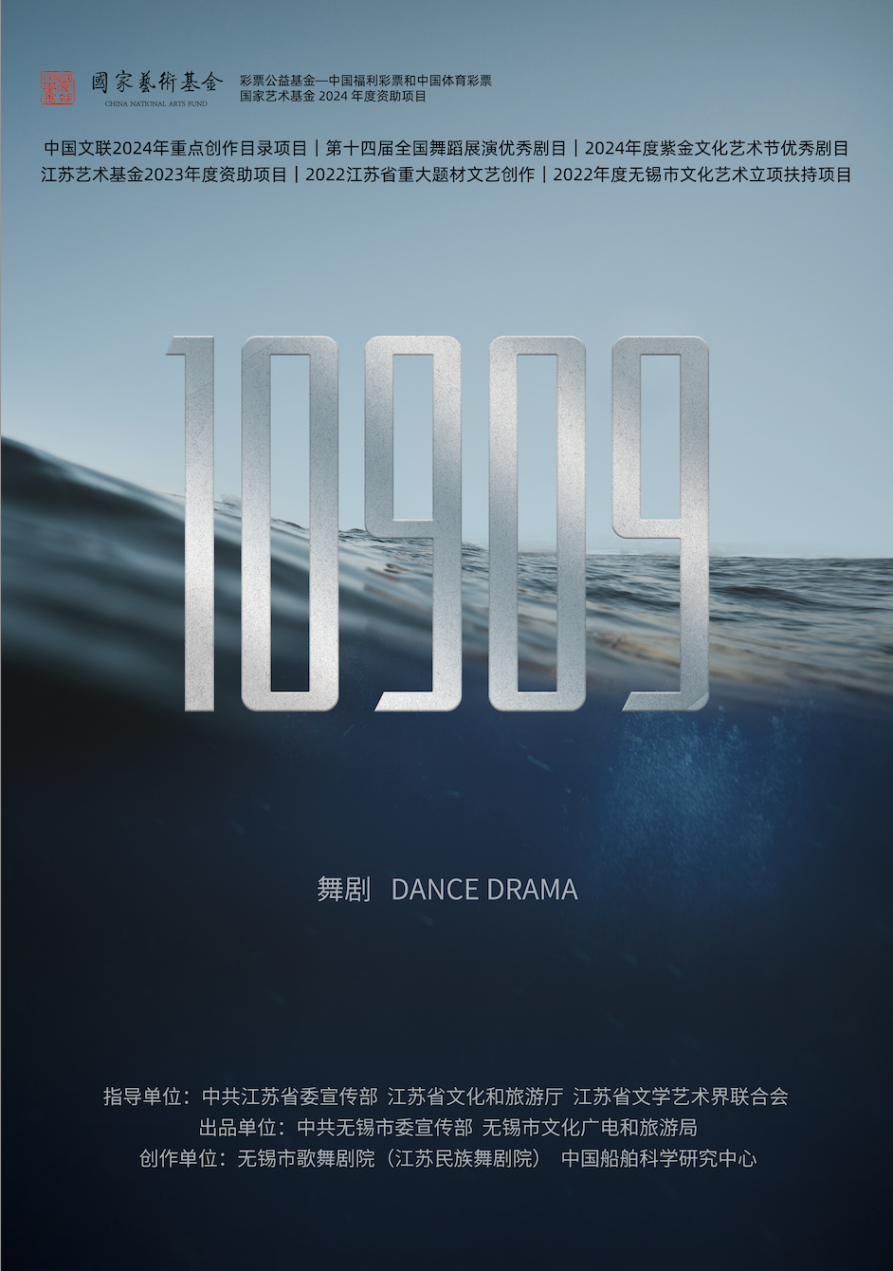 On August 18, the dance drama 10909 was was staged in the finals of the 14th China Dance Lotus Awards. This production was guided by the Publicity Department of the Jiangsu Provincial Committee of CPC, the Jiangsu Provincial Department of Culture and Tourism, and the Jiangsu Provincial Federation of Literary and Art Circles. It was produced by the Publicity Department of the Wuxi Municipal Committee of CPC and the Wuxi Municipal Bureau of Culture, Radio, Television, and Tourism, and jointly created by the Wuxi Song and Dance Theater (Jiangsu National Dance Theater) and the China Ship Scientific Research Center. It has been selected for multiple honors, including the 2022 Jiangsu Provincial Major Theme Literary and Artistic Creation Project, Projects Funded by Jiangsu Art Fund in 2023, and the Jiangsu Stage Art Excellence Support Program. It was also recognized as an Outstanding Production at the 14th National Dance Exhibition. In 2024, it was sponsored by the China National Arts Fund, and was included in the Key Creation Catalog of CFLAC, Excellent Repertoire Promotion List for the 2025 "Scientists' Stories Stage Play Promotion" by the China Association for Science and Technology, the first batch of Promotional Repertoires for the Jiangsu Provincial Scientist Spirit Stage Play Promotion, and was awarded the Excellent Repertoire at the Zijin Culture and Arts Festival. Since its premiere in July 2023, 10909 has been performed in cities such as Shanghai, Nanjing, and Ordos, with a total of nearly 60 shows.