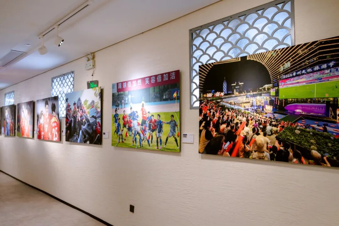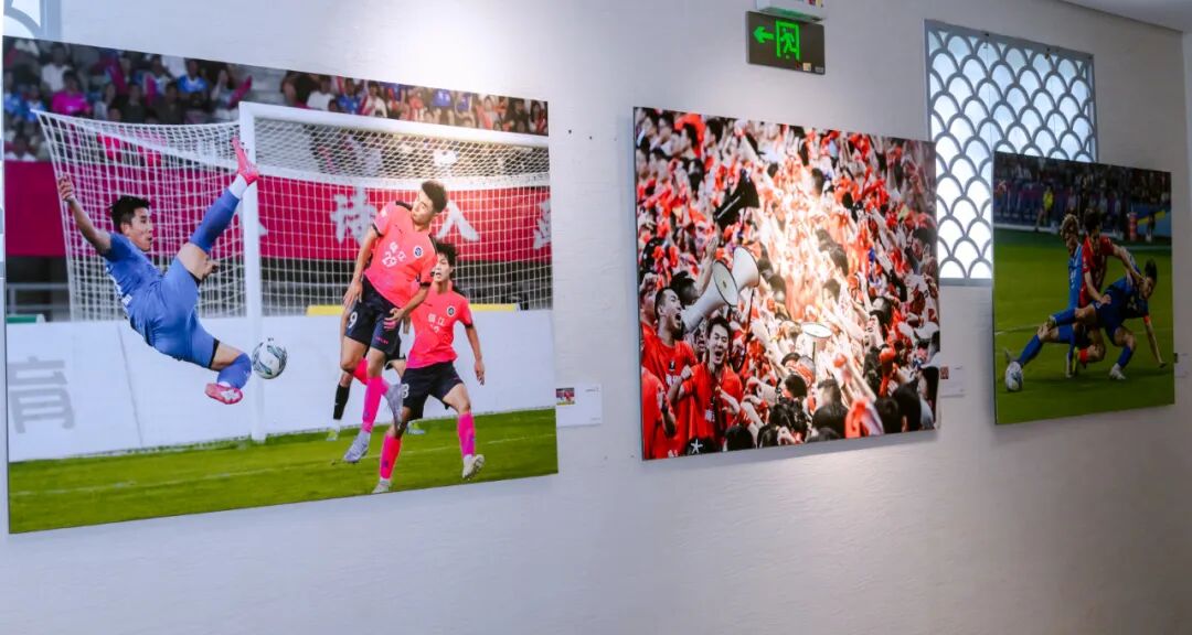 本次展览展出的是“苏超”优秀摄影作品展的部分作品。这些作品不仅记录了赛场上的跌宕起伏:球员腾空射门的精彩瞬间、教练战术指导的认真专注、观众席上的人浪翻涌;更捕捉了赛场外的动人图景:城市街巷因足球而焕发的烟火气,文旅景区因赛事而涌动的人潮,非遗技艺与体育文化的创意碰撞……足球,早已超越竞技本身,成为连接城市情感、推动文旅融合的纽带。这批摄影作品,恰似一扇扇窗口,透过它们,我们既能看见足球运动的原始魅力,亦能触摸到城市文化的温度,这些画面交织成一幅流动的江苏人文地图,证明着体育不仅是力量的角逐,更是情感的共鸣、文化的交融。