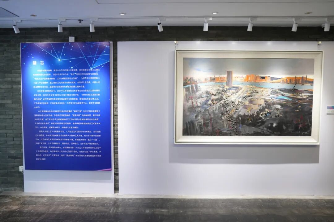 本次展览展出的是江苏省现代美术馆收藏的“新时代颂”2022江苏美术摄影主题联展中部分美术作品。作品用丹青笔墨描绘 “强富美高”的绚丽图景,紧扣讴歌新时代主题,用艺术的形式全面展现新时代江苏经济社会发展取得的历史性成就、发生的历史性变革,并把对新思想的宣传阐释、新成就的讴歌颂扬贯穿艺术家采风创作、作品策展、巡展等各环节,实现重大主题全覆盖。