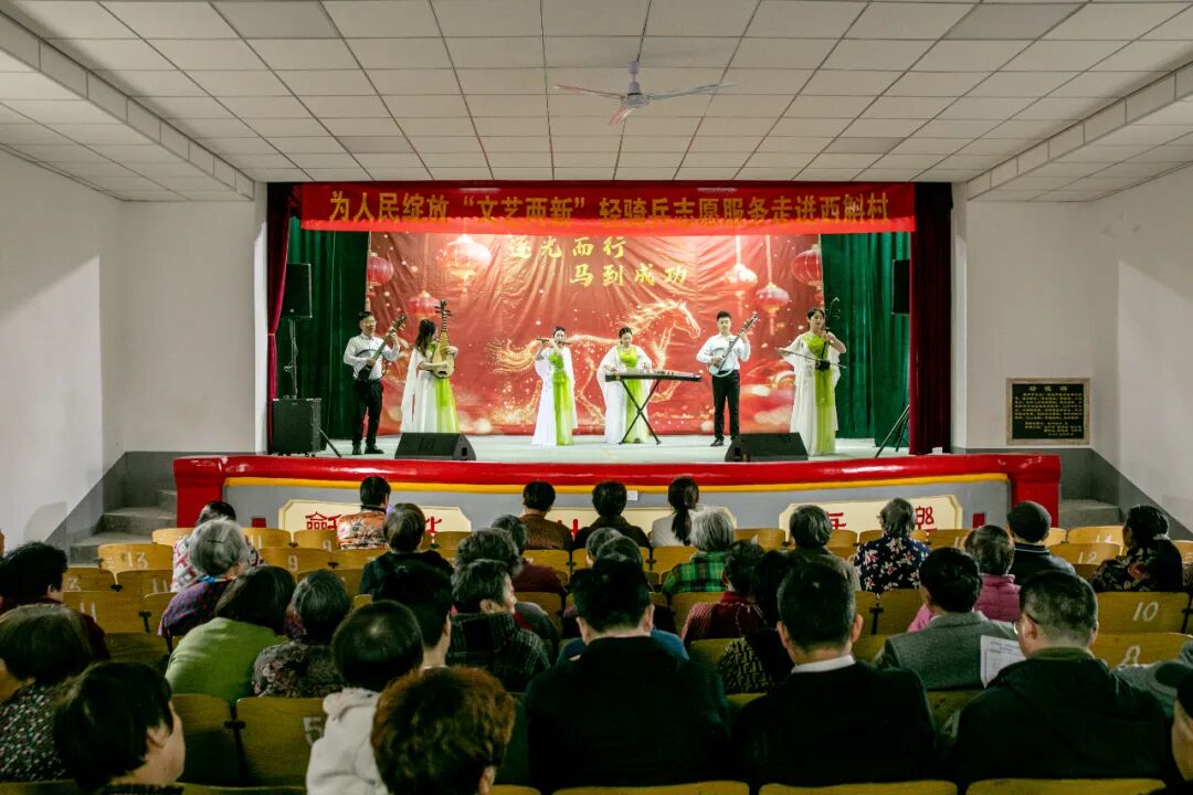 4月23日,镇江市丹徒区高资镇西斛村文化大礼堂内欢声笑语、掌声雷动,镇江市新文艺群体联合会、丹徒区文联联合主办的为人民绽放“文艺两新”轻骑兵志愿服务演出火热开演。新文艺群体艺术家们带着精品力作走进新农村,用精彩纷呈的文艺表达点亮乡村生活,以文艺力量赋能乡村振兴,尽显新时代“文艺两新”的责任与担当。市文联党组成员、秘书长洪琦,市委宣传部文化产业处副处长、丹徒区高资镇西斛村第一书记范洋,市新文艺群体联合会主席赵羽,以及丹徒区文联、市新文艺群体联合会相关负责同志和近百位村民观看了演出。演出由江苏省文联委员、市舞蹈家协会主席葛宇豪担任导演。