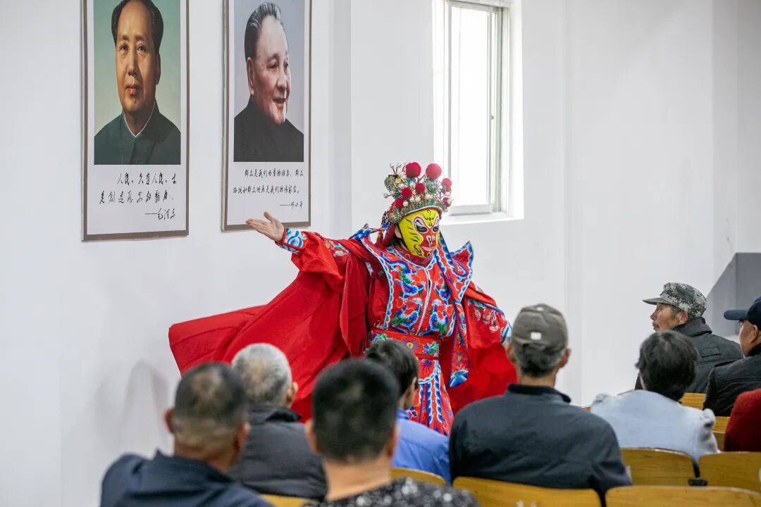 下午两点半,演出在聲融合室内乐团激昂的器乐合奏《九州同》中正式拉开帷幕,悠扬旋律瞬间点燃现场热情。随后,节目轮番登场、亮点纷呈:器乐合奏《渡情》婉转缠绵,江南韵味流淌心间;舞蹈《烟雨江南》舞姿轻盈,勾勒水乡温婉风情;声乐《祖国》深情嘹亮,唱出对家国的赤诚热爱;魔术表演奇幻有趣,引得现场老少连连惊叹;萨克斯独奏《人世间》旋律治愈,传递人间温情;古典舞《锦画》衣袂翩跹,尽显传统美学底蕴;京剧《红灯记》选段韵味十足,国粹魅力感染全场;非遗变脸瞬息万变,精湛技艺赢得满堂喝彩……11个节目涵盖器乐、舞蹈、声乐、魔术、戏曲、非遗等多种形式,兼具思想性、艺术性与观赏性,台上演员倾情演绎,台下村民看得入神、笑得开怀,掌声与喝彩声此起彼伏,幸福洋溢在每个人脸上 。