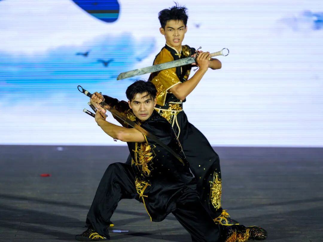 世界武术冠军、一级运动员高乾智和武术演员黄博聪带来的武术表演《乾坤博弈》,刚猛中见巧劲,攻防中彰乾坤之道,一场力与美的视觉盛宴,赢得满堂喝彩!