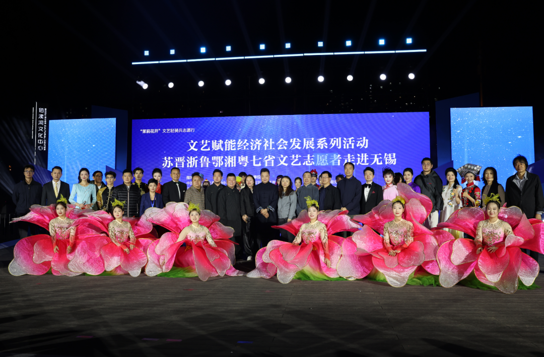 10月29日晚,“茉莉花开”文艺轻骑兵志愿行——文艺赋能经济社会发展系列活动苏晋浙鲁鄂湘粤七省文艺志愿者走进无锡专场演出在伯渎河文化中心举办。