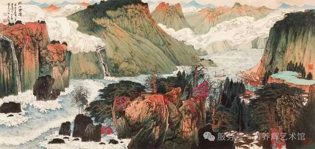 《秋江云涛》70cm×145cm 中国画