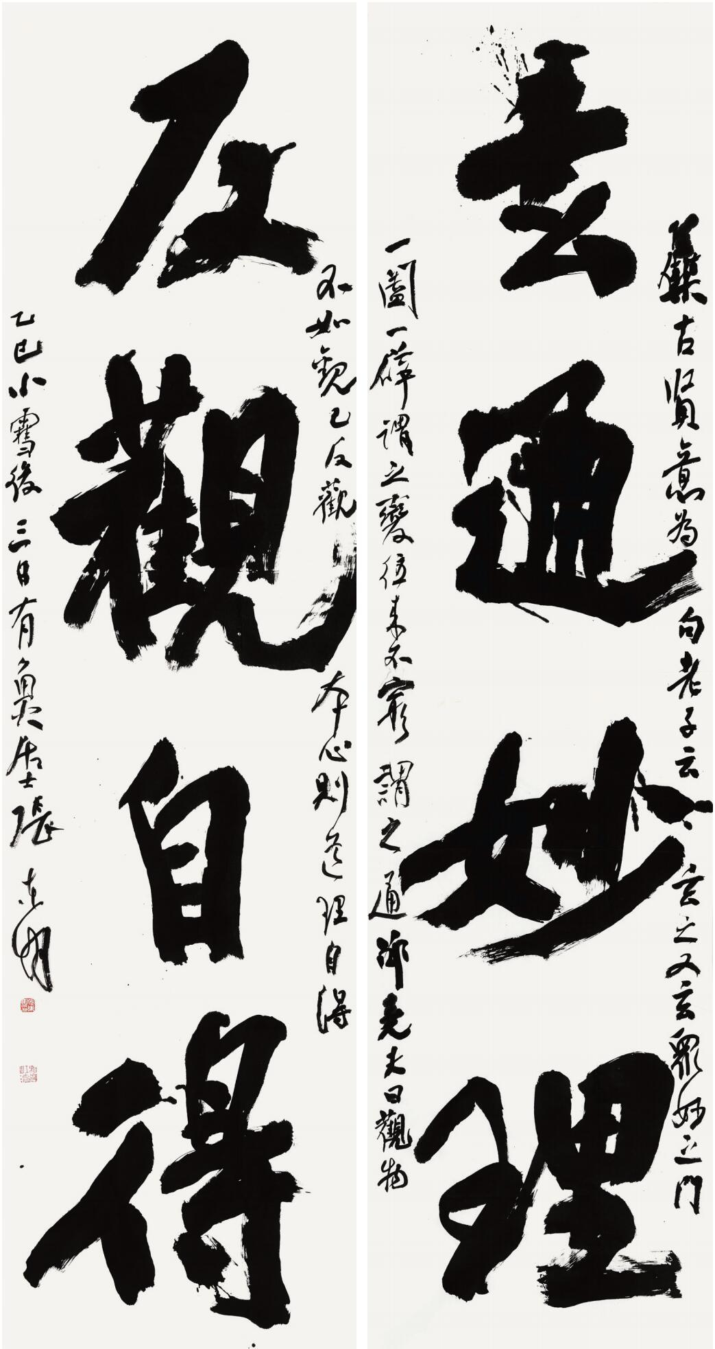2023年《竹里花间联》入展2023中国书法年展前100名;2023《碧海芦花联》入展全国第九届楹联书法展; 2024年《诗阁画堂联》入展全国第十三届书法篆刻展。