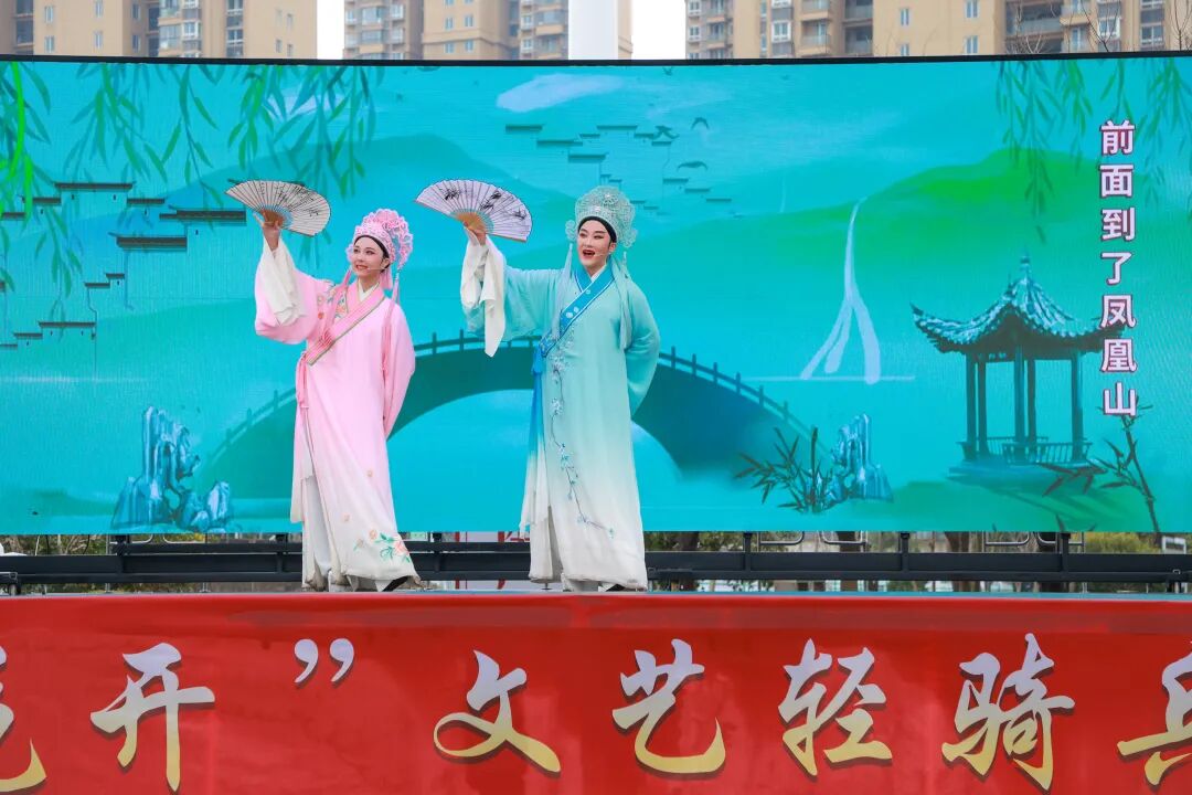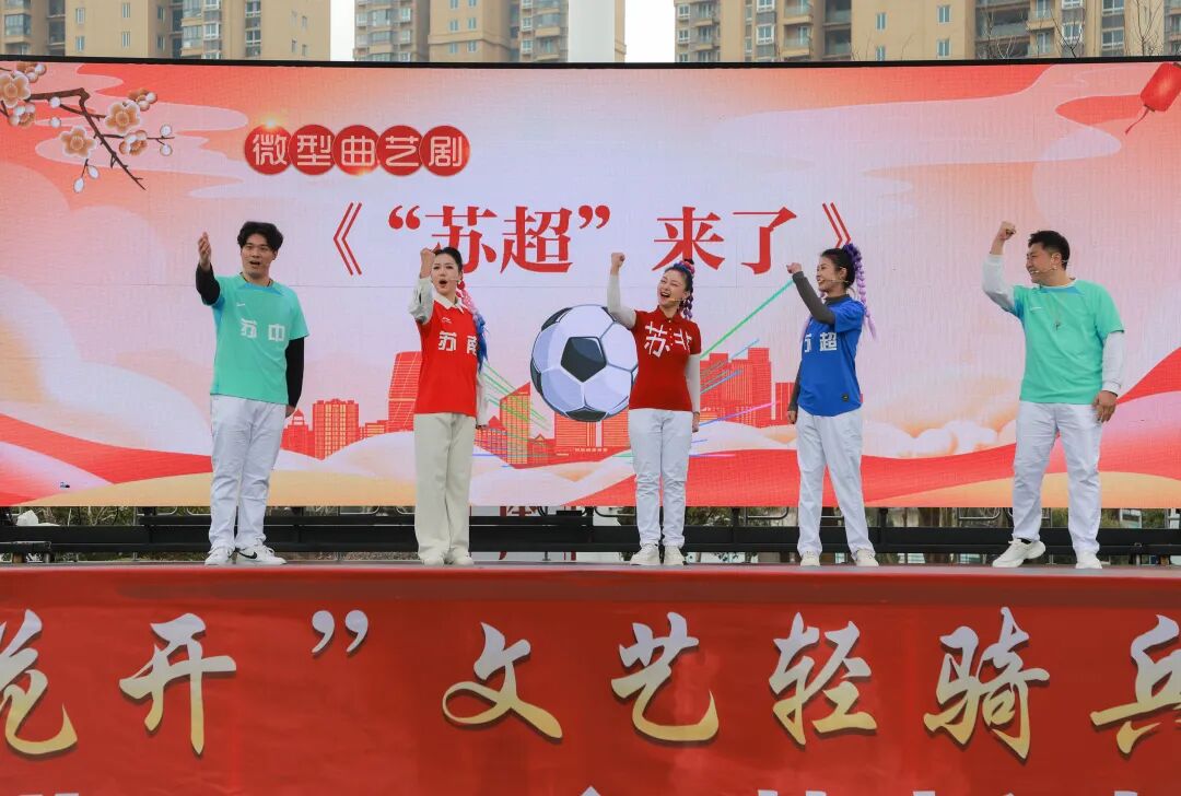 文艺演出环节精彩纷呈。扬州市曲艺研究所带来的扬州清曲《又见茉莉花》,以悠扬唱腔再现江苏文化符号,拉开了演出序幕。接下来的微型曲艺剧《“苏超”来了》,传统与现代结合,文艺与体育交织,碰撞出别样国风韵味。武术表演《武动童年》中,来自句容市天王中心小学的少儿武者以饱满的热情、标准的招式,展现少年意气风发,将现场气氛推向了高潮。由戏剧名家组成的文艺志愿者小队带来了戏曲联唱,越剧《梁祝·十八相送》、京剧《智取威虎山》选段、扬剧《新春观灯》等经典桥段轮番上演,让现场戏迷过足瘾,赢得阵阵掌声。演出在歌舞《春风十万里》中圆满落下了帷幕。