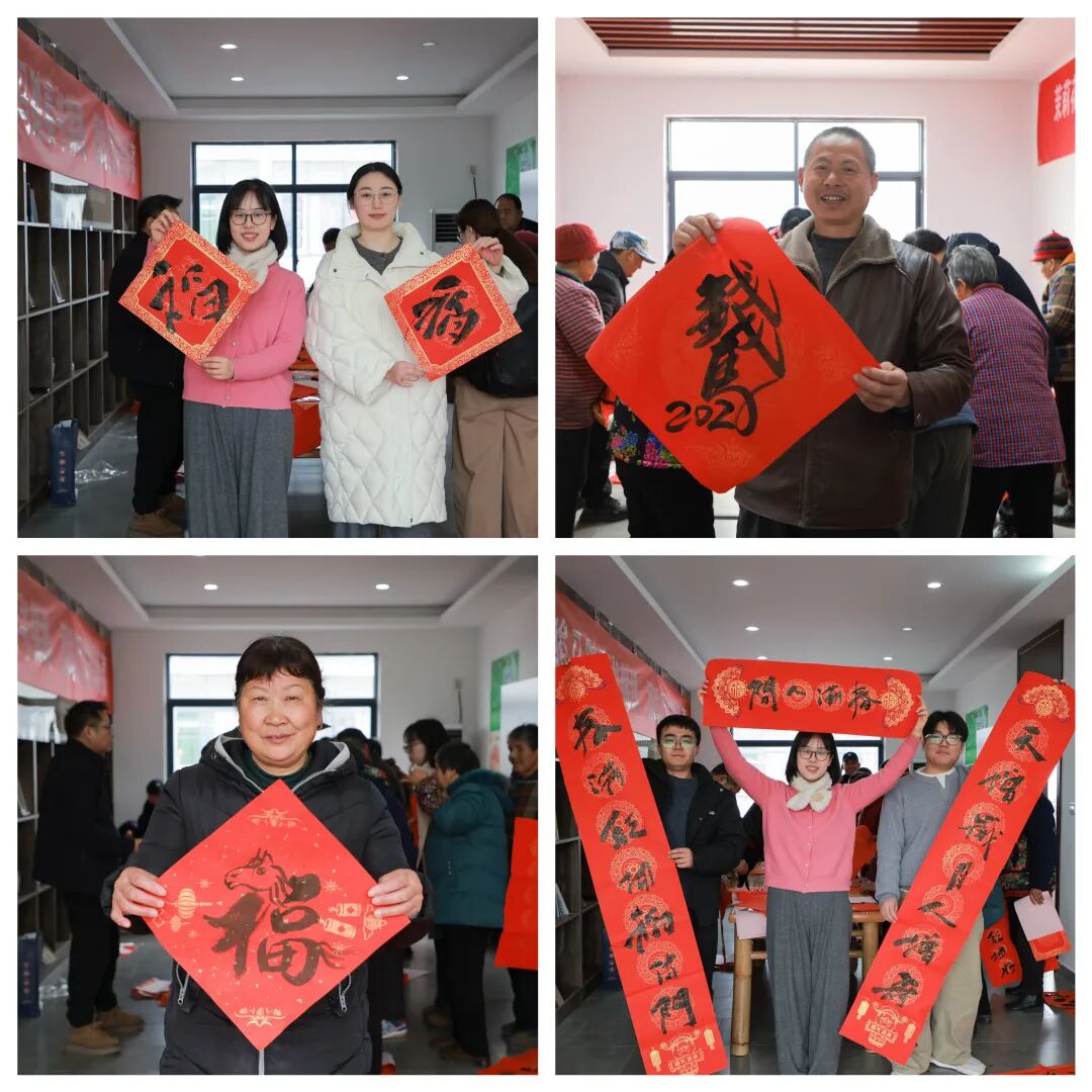 现场的“迎新春”集市上,人头攒动,气氛热烈,欢声笑语不断。十三位书法志愿者现场挥毫,书写春联和“福”字,将新春的美好期许凝于笔端。接过春联和“福”字的群众脸上洋溢着幸福的笑容,直呼这是最贴心的新春祝福。