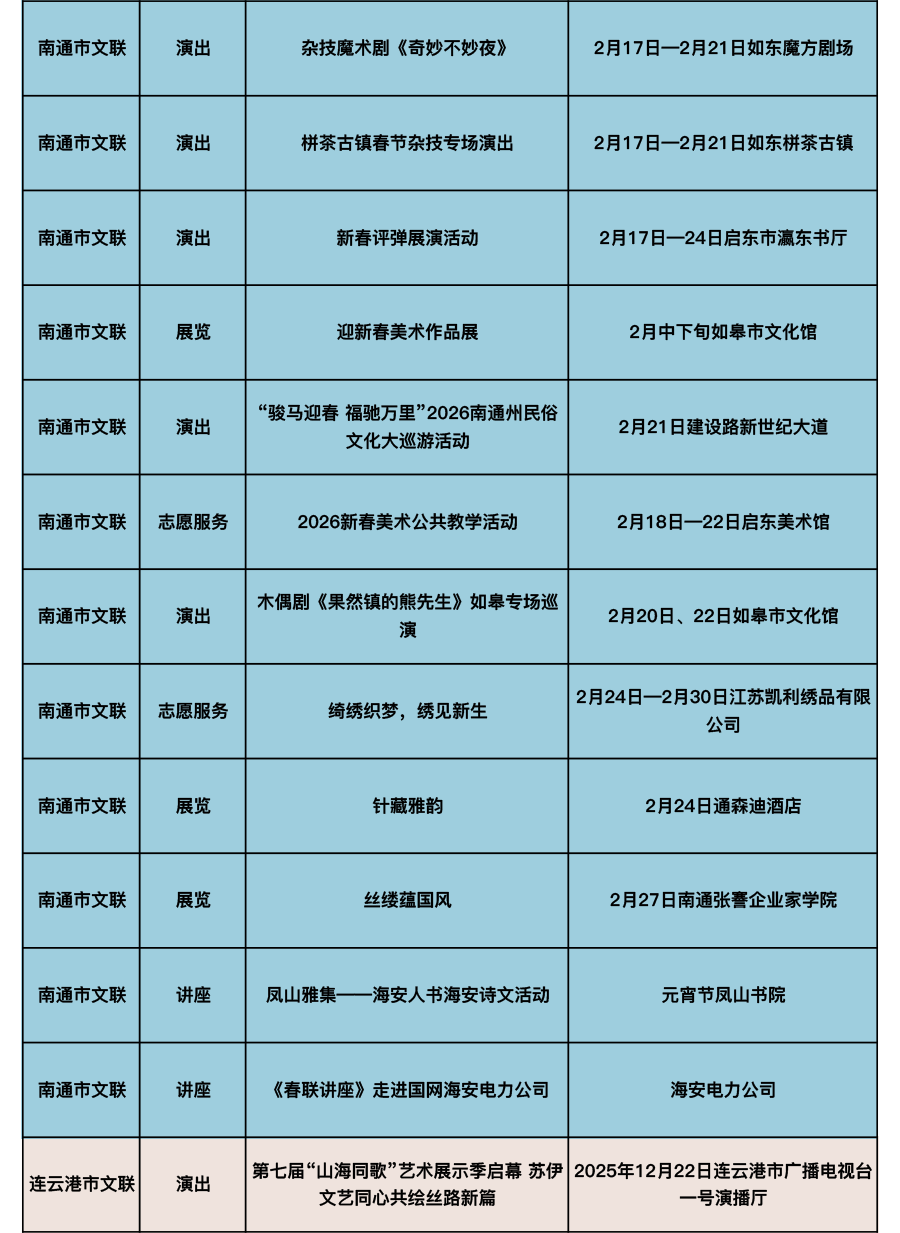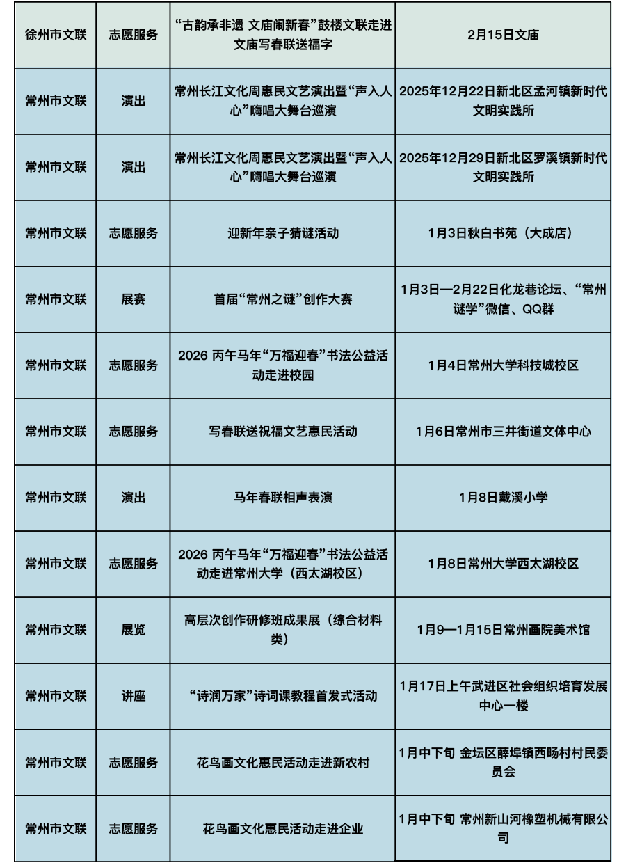 “茉莉花开”文艺轻骑兵志愿行——“强基工程”2026江苏新春特别行动已于1月31日正式启动。本次新春特别行动以 “强基工程” 为抓手,将优质文艺资源精准下沉基层,丰富群众节日文化生活,增强文化获得感与幸福感,营造喜庆祥和的新春氛围,推动文艺助力基层精神文明建设行动走深走实。