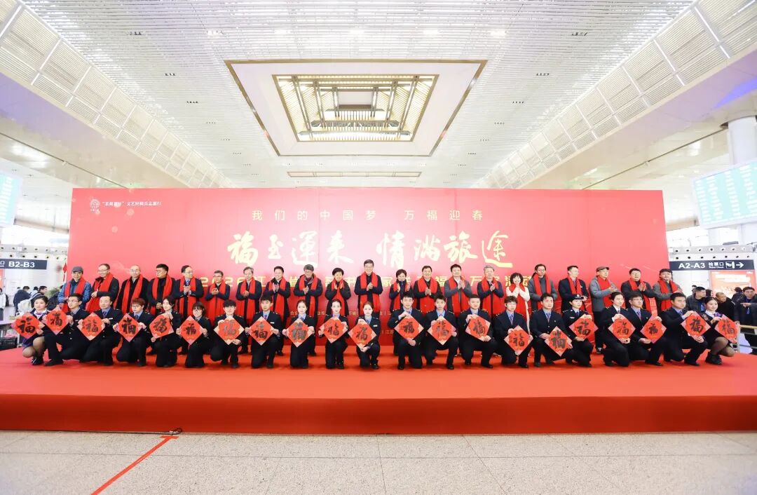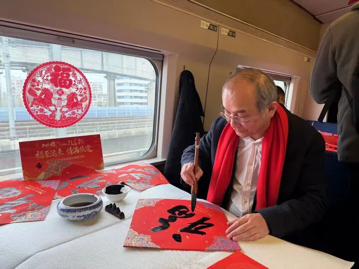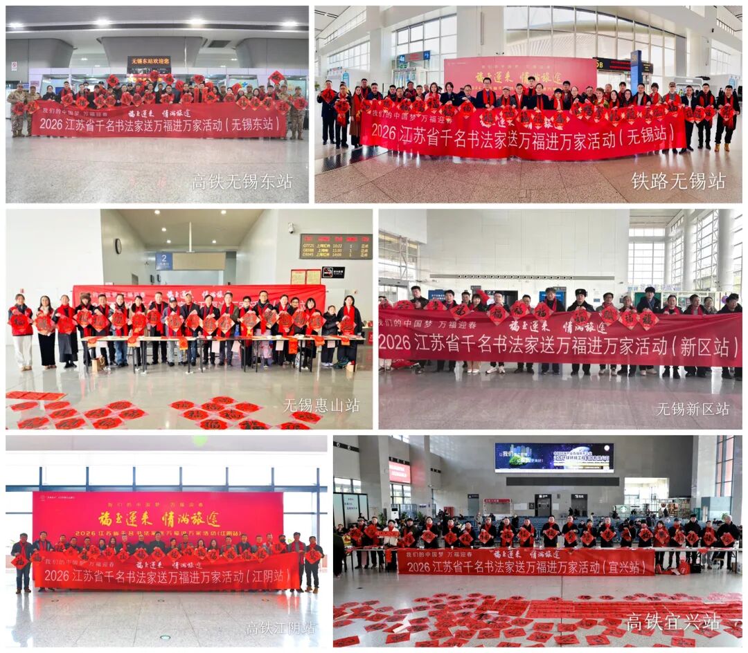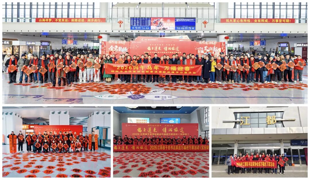 2月1日,由江苏省文学艺术界联合会、新华报业传媒集团、江苏省广播电视总台、江苏省书法家协会、中国铁路上海局集团公司联合主办,江苏各市书法家协会、铁路南京站、江苏省广播电视总台城市频道协办的“万福迎春”2026“福至运来 情满旅途”——江苏省千名书法家送万福进万家活动启动仪式在南京南站举行。