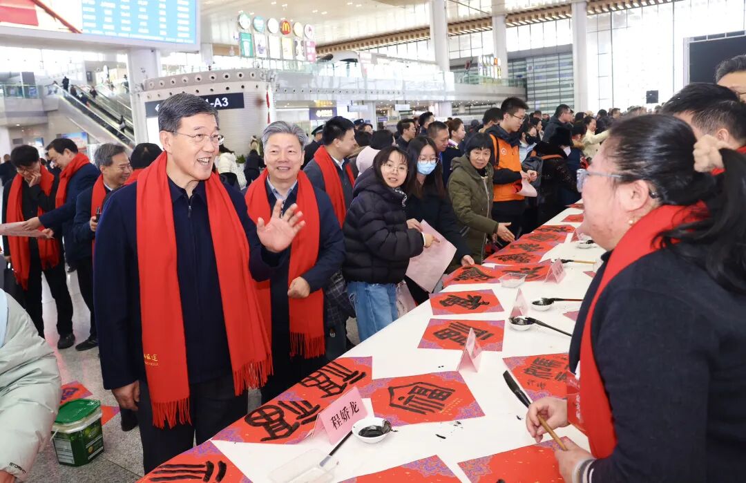 百余名书法家现场挥毫为来往旅客送去新年祝福