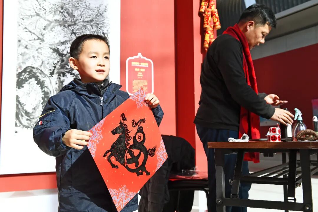 活动现场举办了艺术家写春联送祝福、送吉祥,木刻年画、非遗拓印公教等一系列迎春文艺惠民活动。展厅内还贴心设置寄语留言、春联创作、工艺体验等互动场景,为艺术与大众搭建起桥梁,让观众从旁观者变为参与者、共鸣者,让“艺聚”底蕴滋养出更具活力与温度的文化沃土。