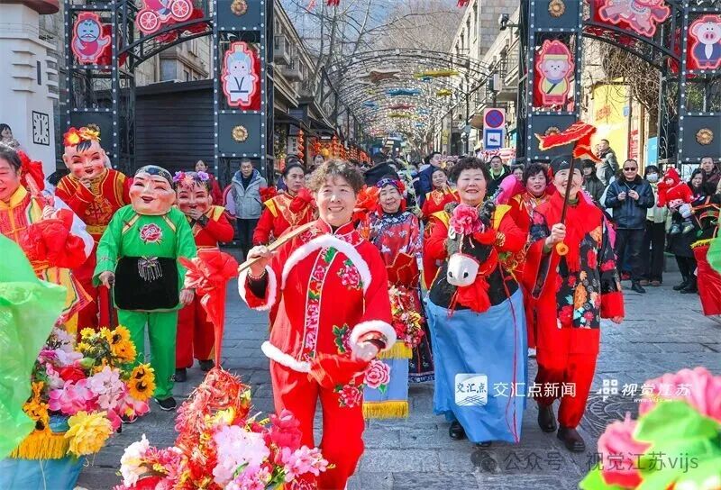 2026年2月17日,建湖县在县城中心大街举办“欢庆2026马年春节大踩街”活动,民俗表演队伍为大家表演精彩的节目。李根 摄
