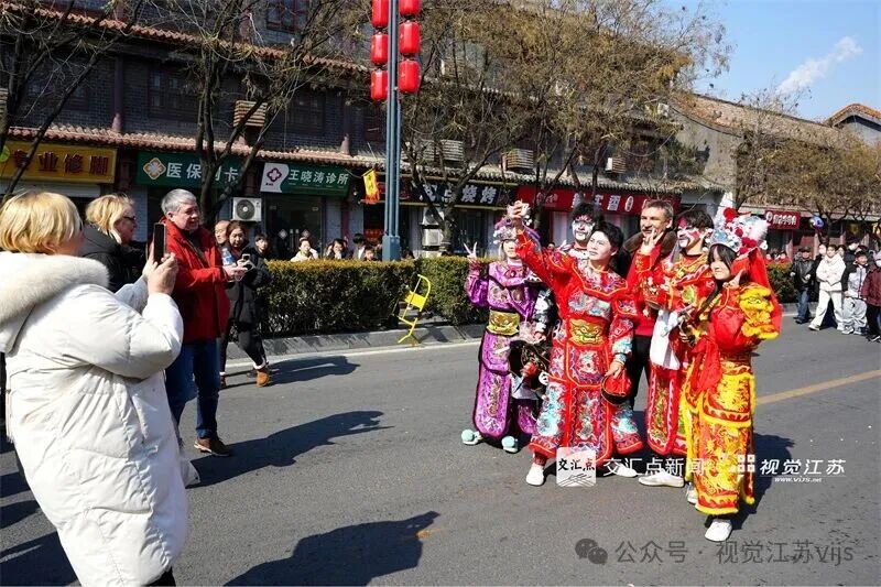 2026年2月17日,连云港市海州区在海州古城举行国风巡游活动,外国游客与身穿戏曲服饰的演员合影。王永岭 摄