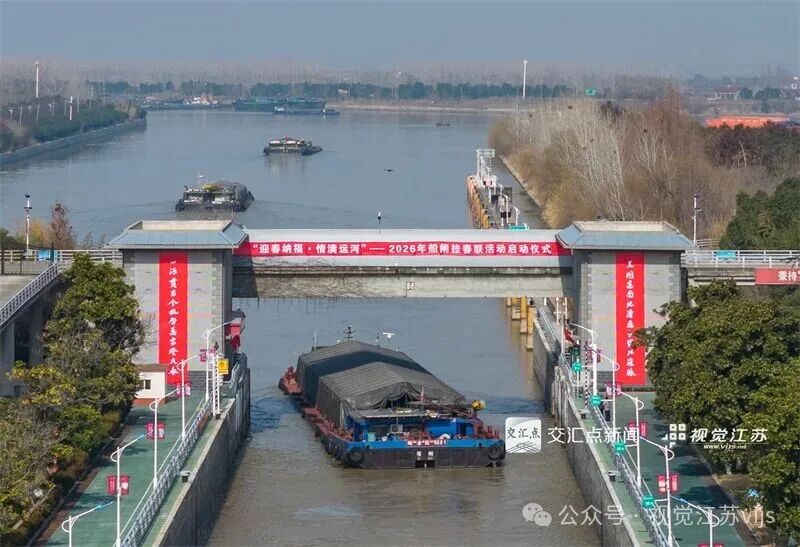 2026年2月4日,江苏省交通运输系统文学艺术联合会、苏北航务管理处等单位联合主办“迎春纳福·情系运河”船闸挂春联文化活动,组织10多位书法家在水上服务区书写春联和“福”字,赠送过闸船民。左毅 摄