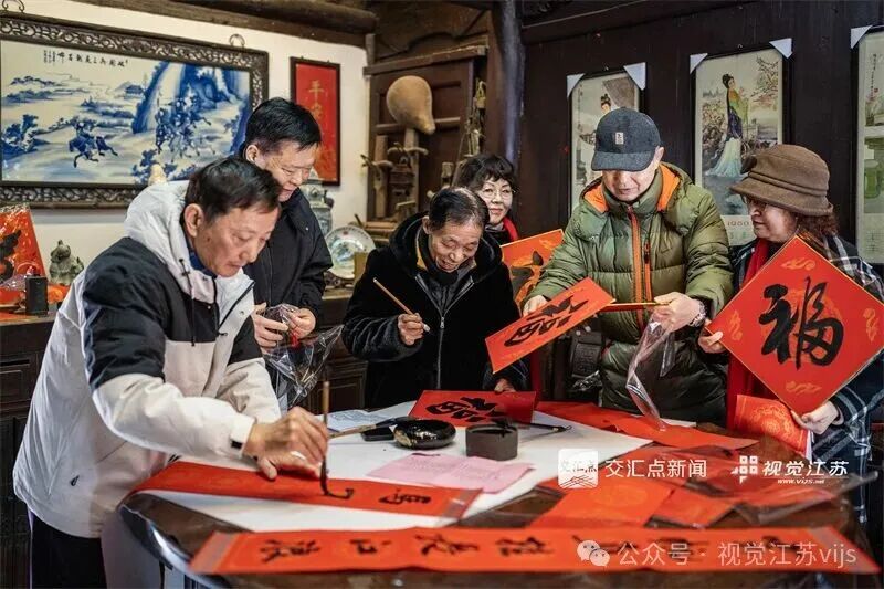 2026年2月4日,南通西南营老宅内,书法家挥毫泼墨,写春联和“福”字,年味浓浓。蒋跃丽 摄