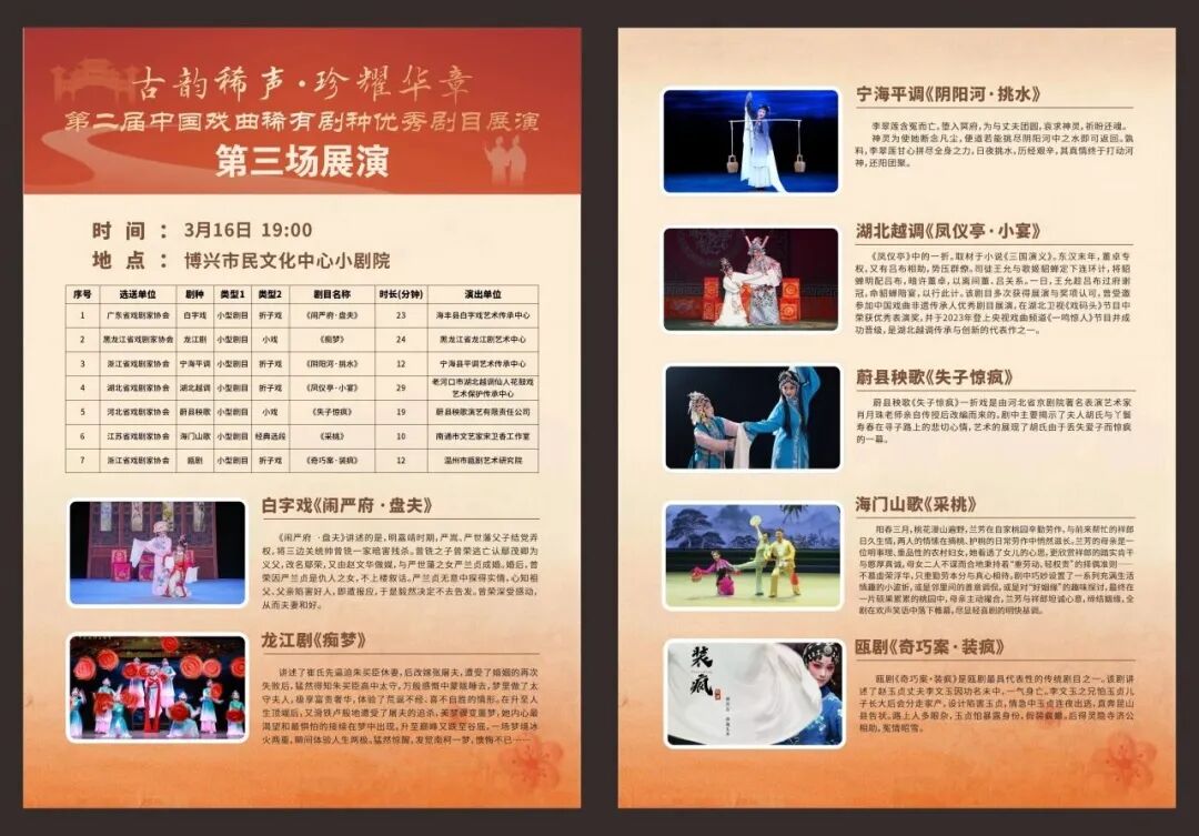 中国戏曲稀有剧种优秀剧目展演,是中国戏剧家协会创办的旨在推动稀有剧种传承发展的重要艺术活动。展演集中推出了一批彰显中华优秀传统文化、反映时代发展进步、讴歌人民美好生活的精品力作,见证了众多稀有剧种在传承发展之路上的坚实步伐。