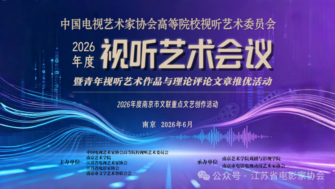 为深入贯彻落实文化强国建设要求,筑牢中国视听艺术自主发展根基,由中国电视艺术家协会高等院校视听艺术委员会、南京艺术学院、江苏省电视艺术家协会、江苏省电影家协会、南京市文学艺术界联合会主办,南京艺术学院戏剧与影视学院、南京市电影电视动漫艺术家协会承办的2026年度视听艺术会议即日起启动会议征稿暨青年视听艺术作品与理论评论文章征集。