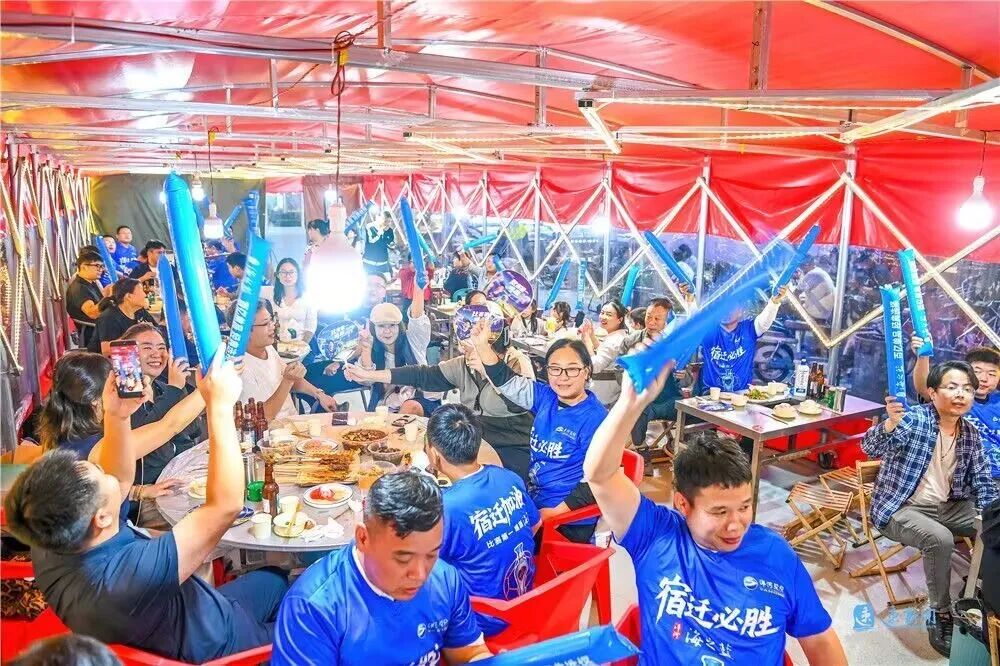 街区,就是我们的深夜看台!不仅有户外大屏直播,还有龙虾烧烤、啤酒畅饮,把球赛变成一场美食嘉年华。下班别急着回家,拐进街巷,举杯同嗨,让宿迁队的每一脚射门都有烟火气加持!