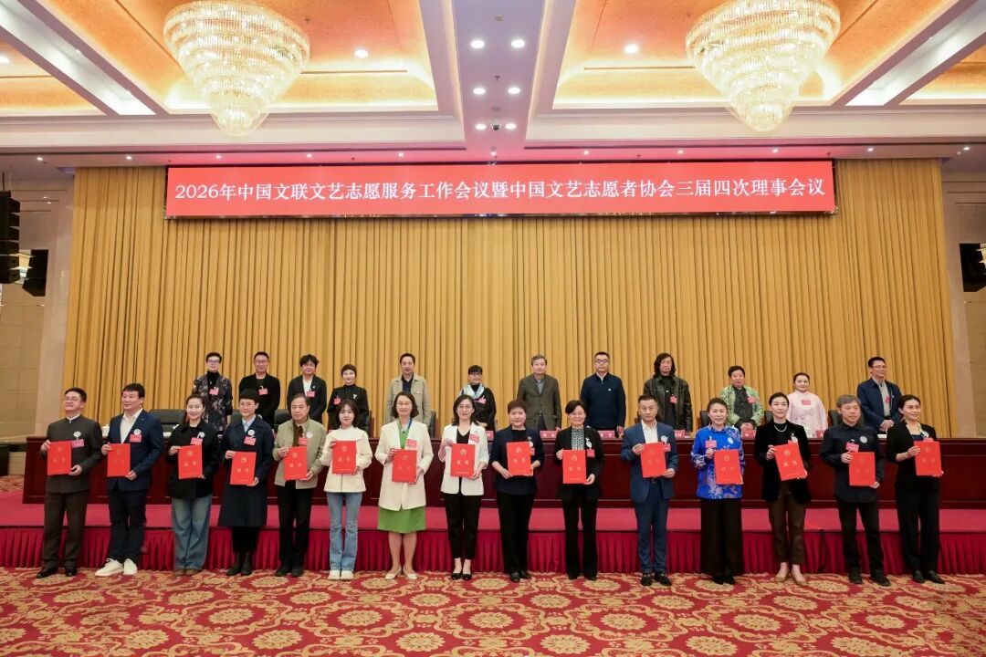 4月17日—18日,2026年中国文联文艺志愿服务工作会议暨中国文艺志愿者协会三届四次理事会在北京召开。会议学习践行习近平文化思想,贯彻落实习近平总书记致中国志愿服务联合会第三届会员代表大会的重要贺信精神,落实全国宣传部长会议、全国社会工作部长会议、中国文联十一届七次全委会工作部署,总结“强基工程”三年实施成果,锚定强国建设的宏伟目标,紧扣“十五五”时期重点任务,对推动文艺志愿服务工作制度化、常态化、品牌化、专业化发展作出部署。理事会议听取并审议了工作报告、会员发展、理事更替、文艺志愿服务标识基本规范、协会会歌等事项,通报表扬了2025年度协会单位会员。