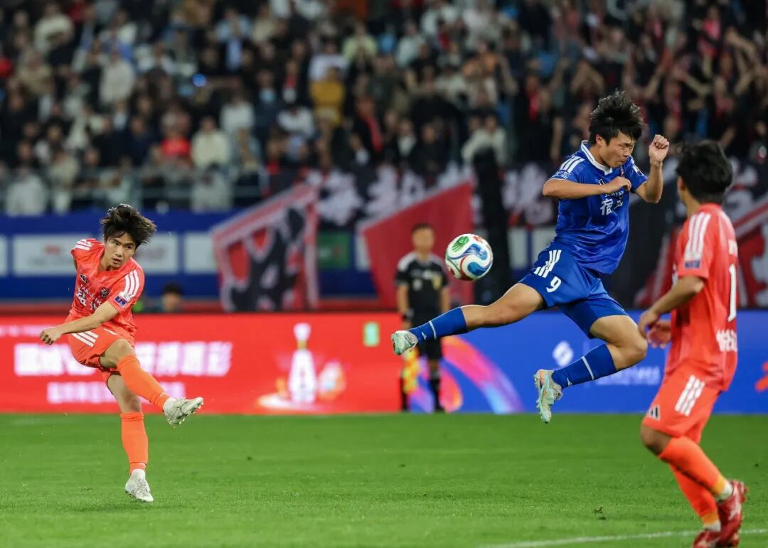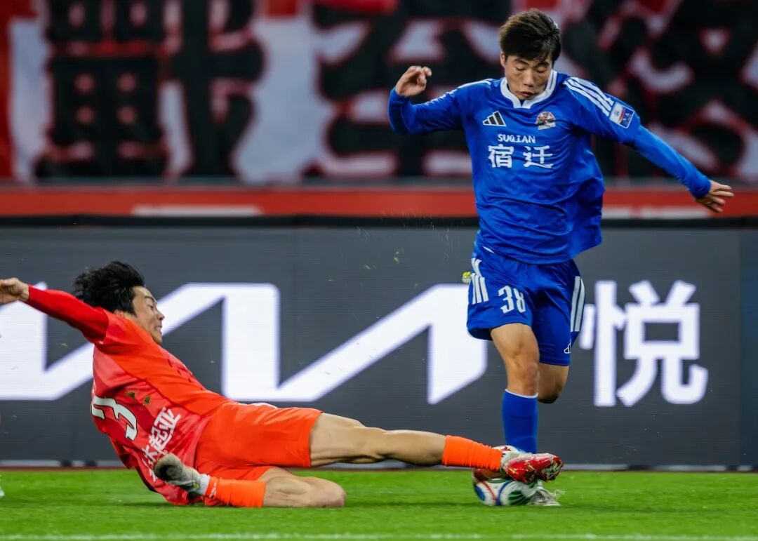 宿迁队球员卜飞扬越位进球。王帅甫 摄
