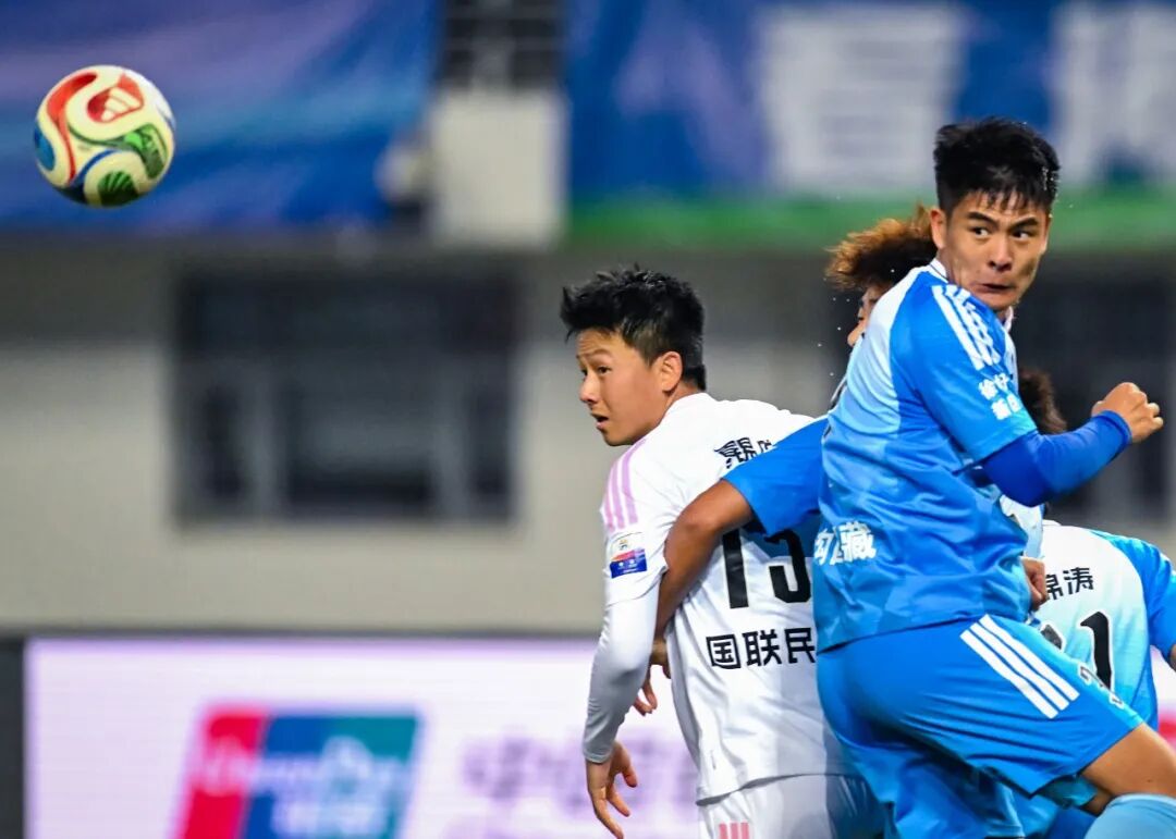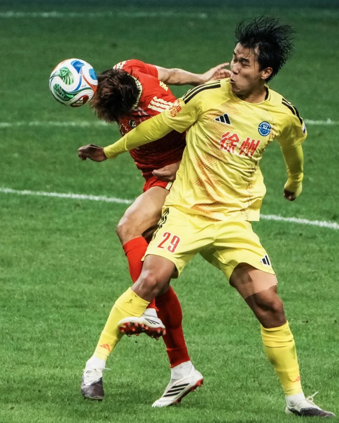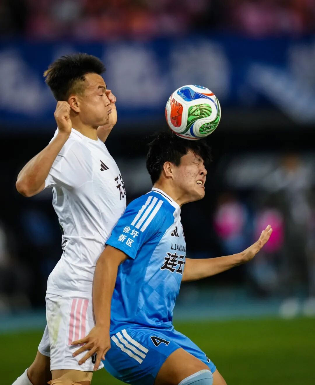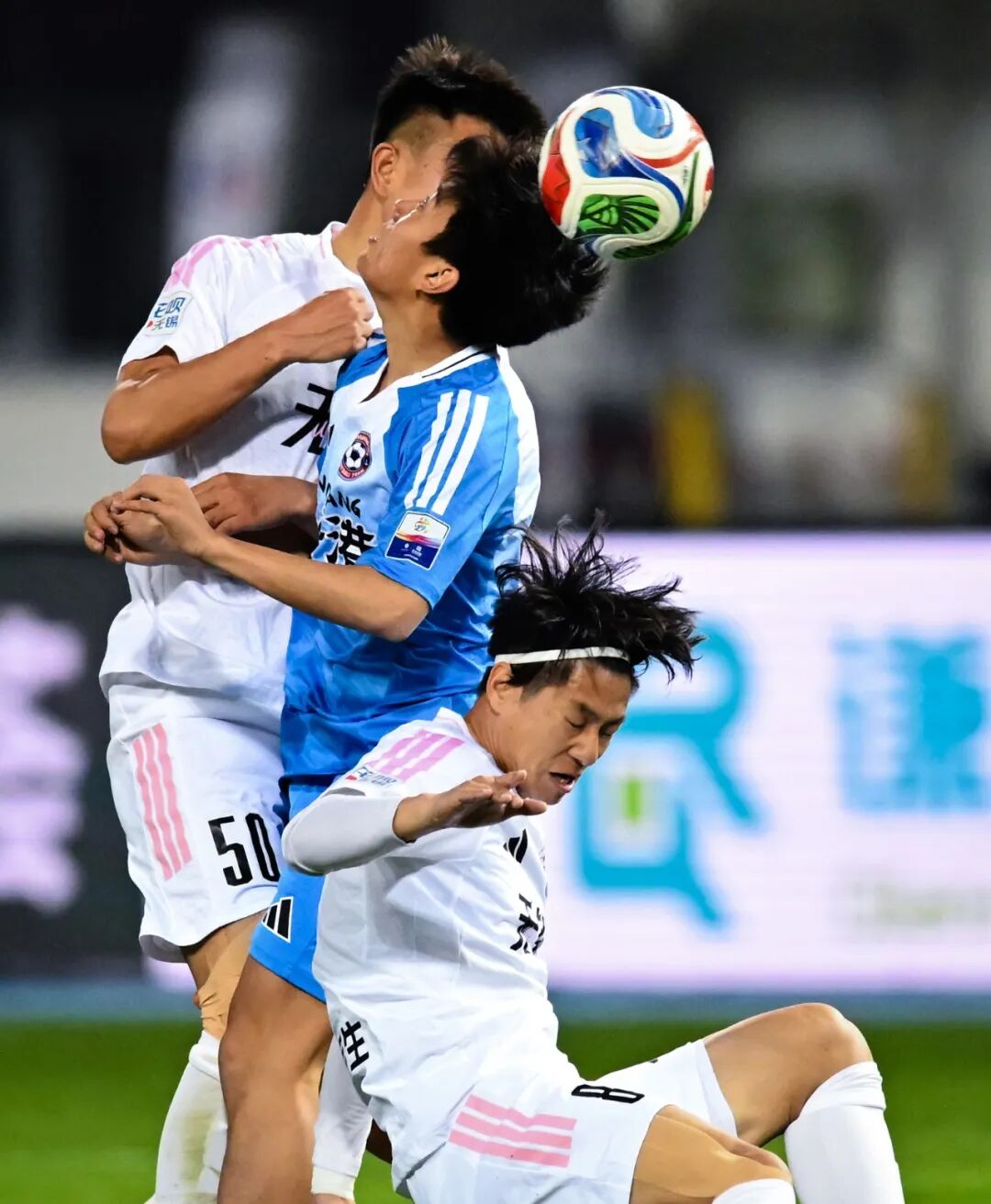 连云港队4号球员顶球瞬间。吴雨敏 摄