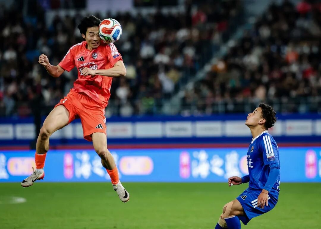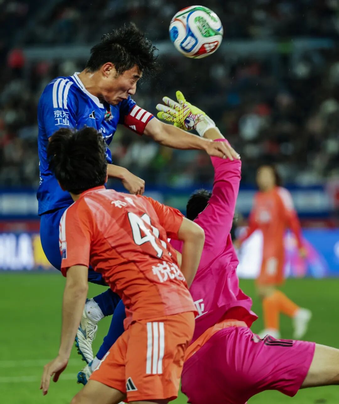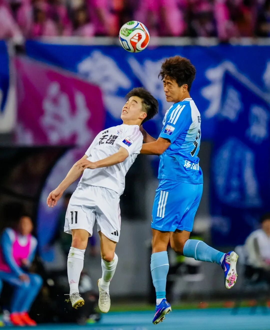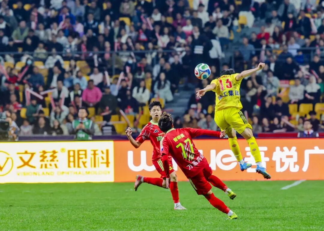 连云港队4号球员顶球瞬间。吴雨敏 摄