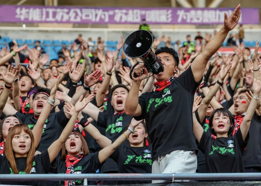 2026年4月25日,各地球迷来到南通体育会展中心体育场为南通队和徐州队助威,大家感受到“苏超”现场热烈氛围。陈天扬 摄