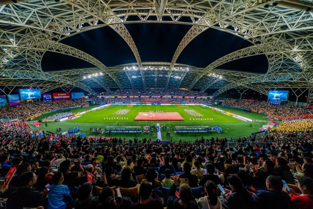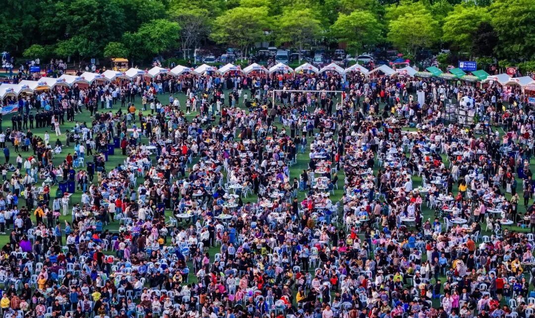 2026年4月25日晚,南通市民齐聚濠河边上的环西文化广场共赴足球盛宴。黄旭 摄