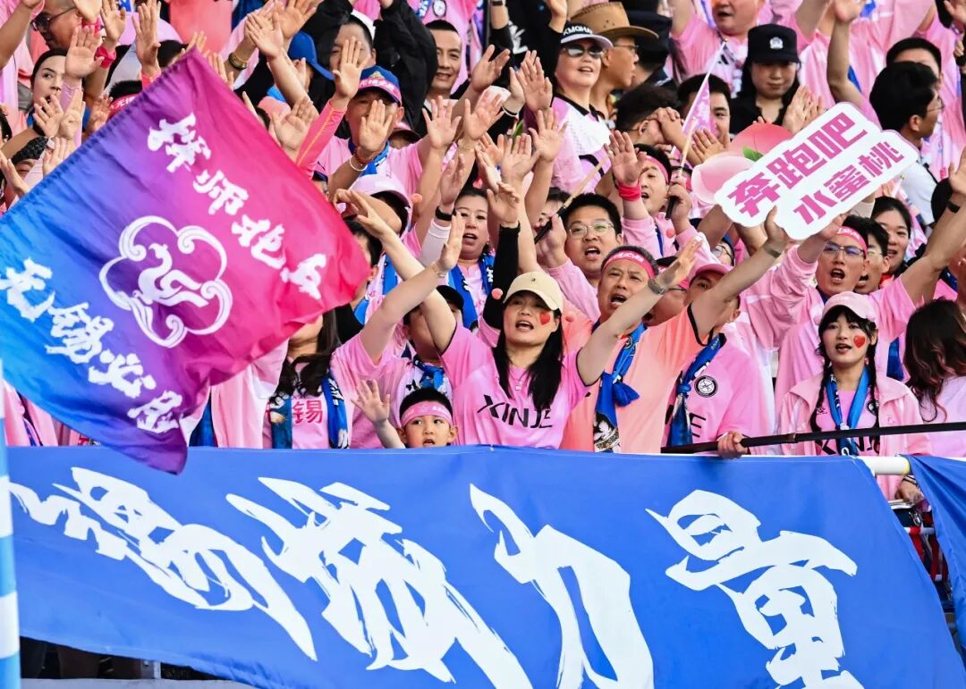 2026年4月25日,宿迁市苏宿工业园区的球迷们齐聚“苏超”第二赛场,为自己的城市球队呐喊助威。魏琦原 摄