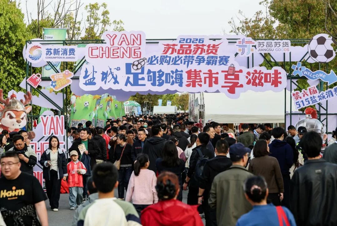 2026年4月25日,在盐城奥体中心体育场外,2026苏品苏货必购必带争霸赛热闹非凡。万程鹏 摄