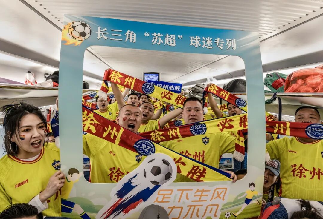 2026年4月25日,在徐州开往南通的“苏超”高铁专列上,近1000名徐州球迷群情激昂,全力为家乡队加油。周广金 摄
