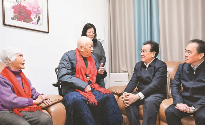 新春佳节即将到来,省委书记信长星来到95岁老党员、老战士杨承芳家里,与他促膝交谈,问冷暖、话家常,倾听老人回忆峥嵘岁月。本报记者 吴胜 摄