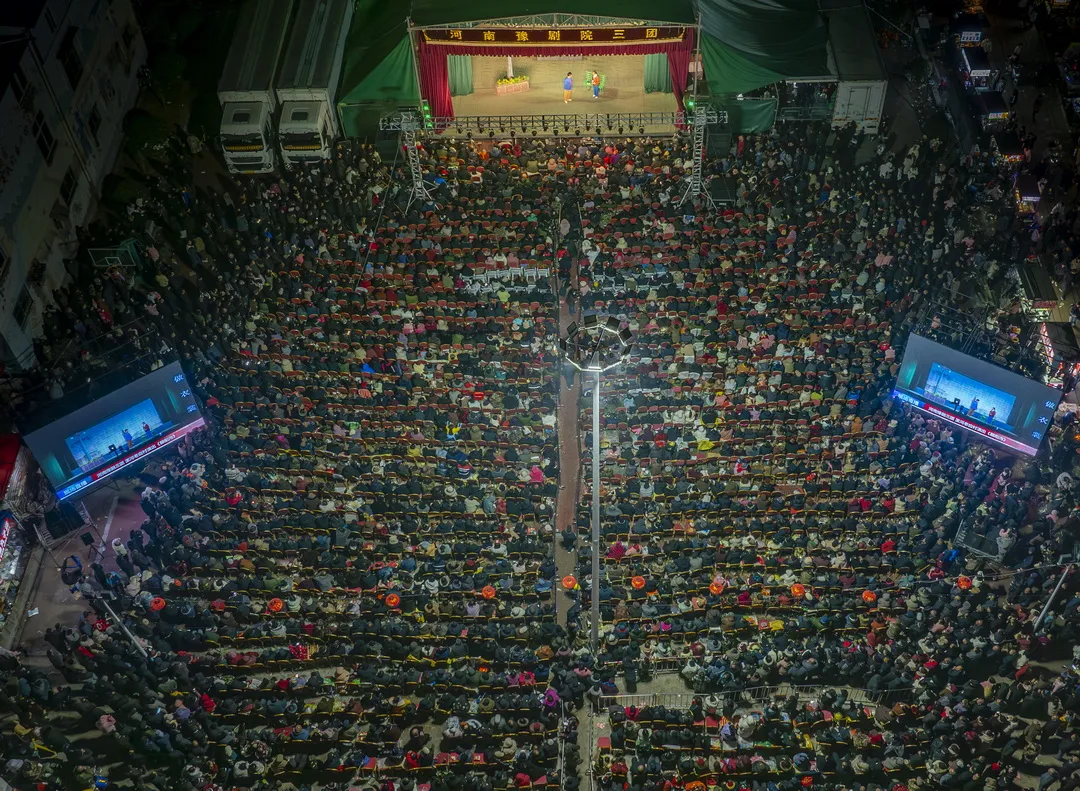 2025年2月21日,河南省漯河市老应村,村民观看河南豫剧院三团演出。送戏下乡惠民工程作为当地民生实事之一,是增进人民福祉、提升基层群众文化生活品质的重要举措。