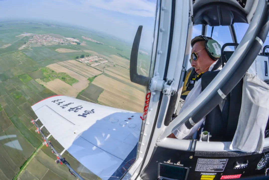 2015年6月17日,“画眉鸟”飞机的飞行员王长宏在飞行时观察地块位置。