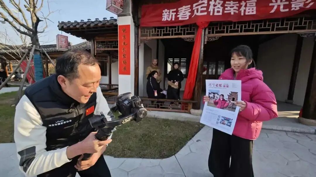 ▲日前,“河下春韵•幸福定格”春节公益摄影行走进河下古镇。摄影志愿者免费为游客拍摄照片,并提供现场打印服务,让游客在古色古香的年味里,直接把新春幸福揣回家。