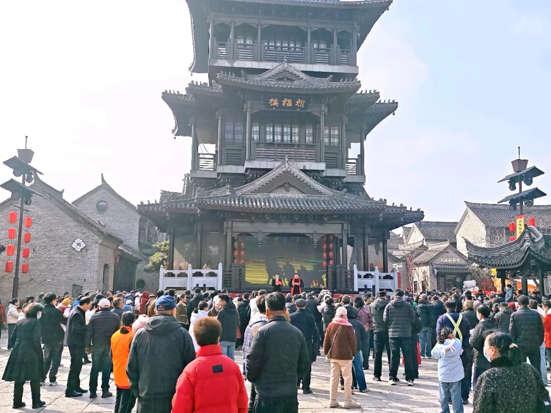 ▲元宵佳节期间,宿迁市民间文艺家协会等单位在祈福楼联合举办元宵文艺演出活动。现场,精彩的文艺演出与浓郁的墨香雅韵交相辉映,为街区增添了浓厚的文化气息与生机活力。