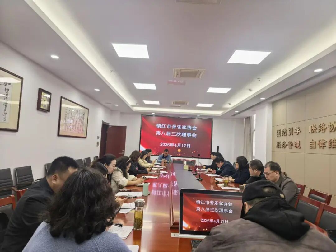 ▲4月17日,镇江市音乐家协会八届三次理事会在市文联一楼会议室召开。会议强调,要加强组织建设,推动创作扎根人民,拓展钢琴赛事、“春华秋实”音乐会等活动,深化人才培养,提升服务能力,为镇江音乐事业与文化强市作贡献。