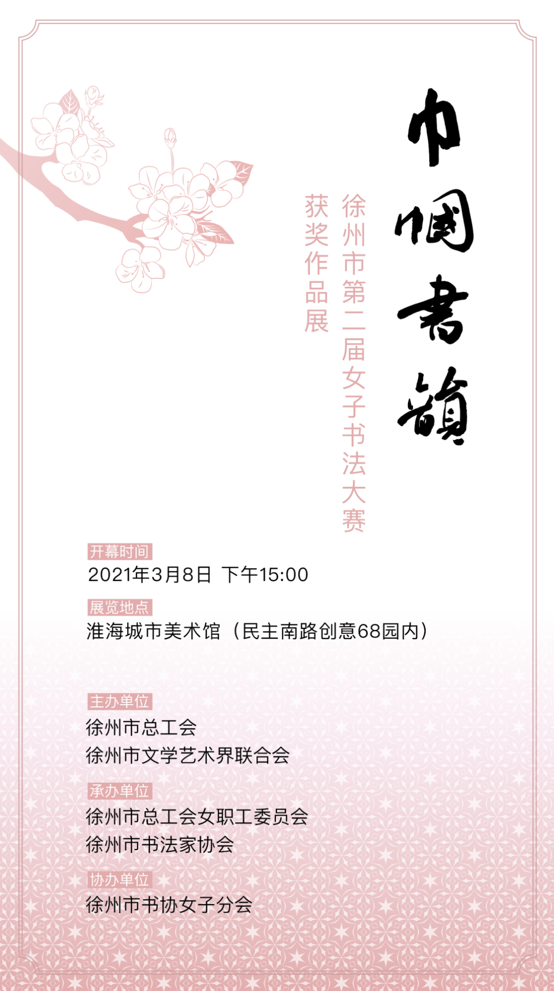 巾帼书韵——徐州市第二届女子书法大赛获奖作品展将于3月8日开展