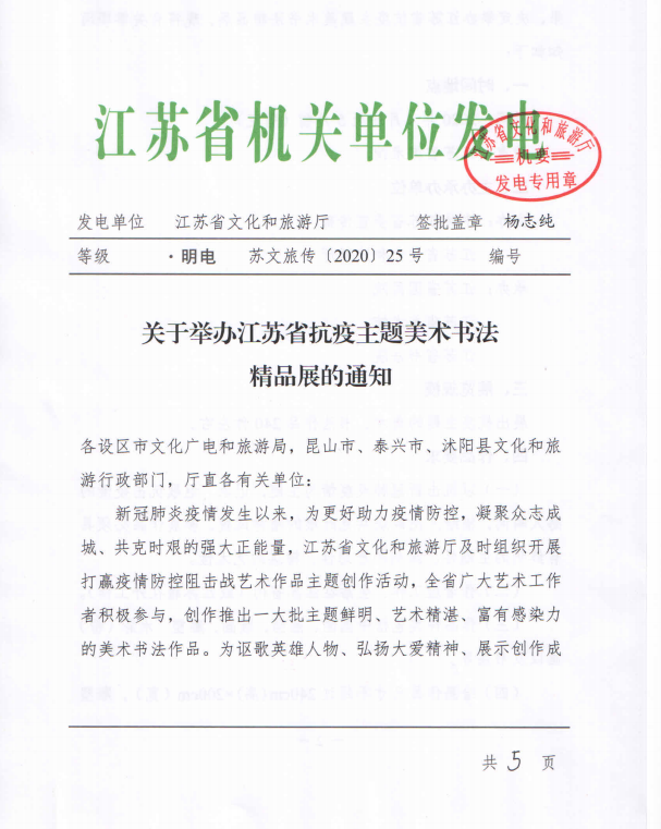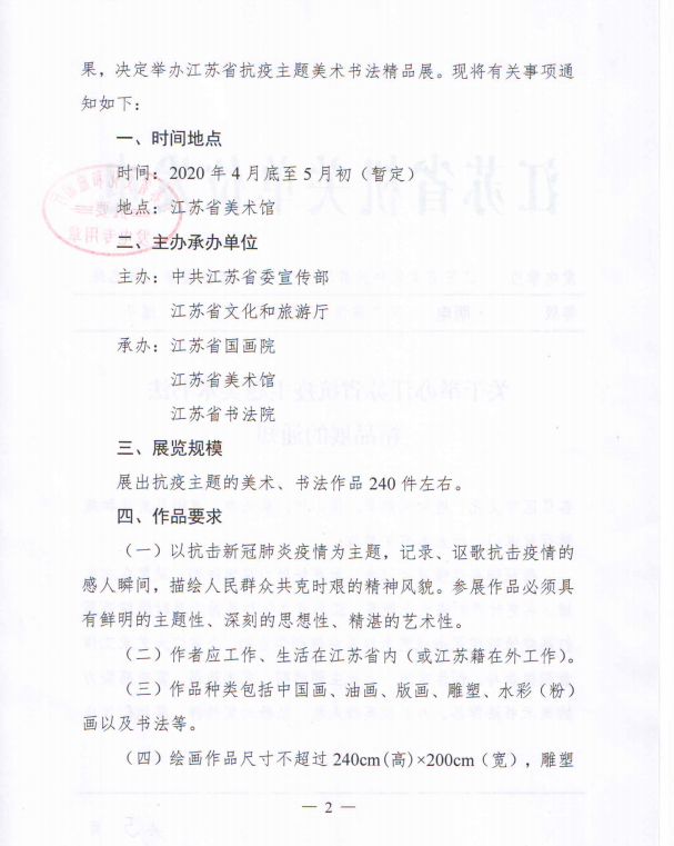 关于举办江苏省抗疫主题美术书法精品展的通知