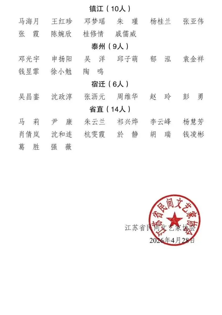 江苏省民协2026年上半年新入会会员名单
