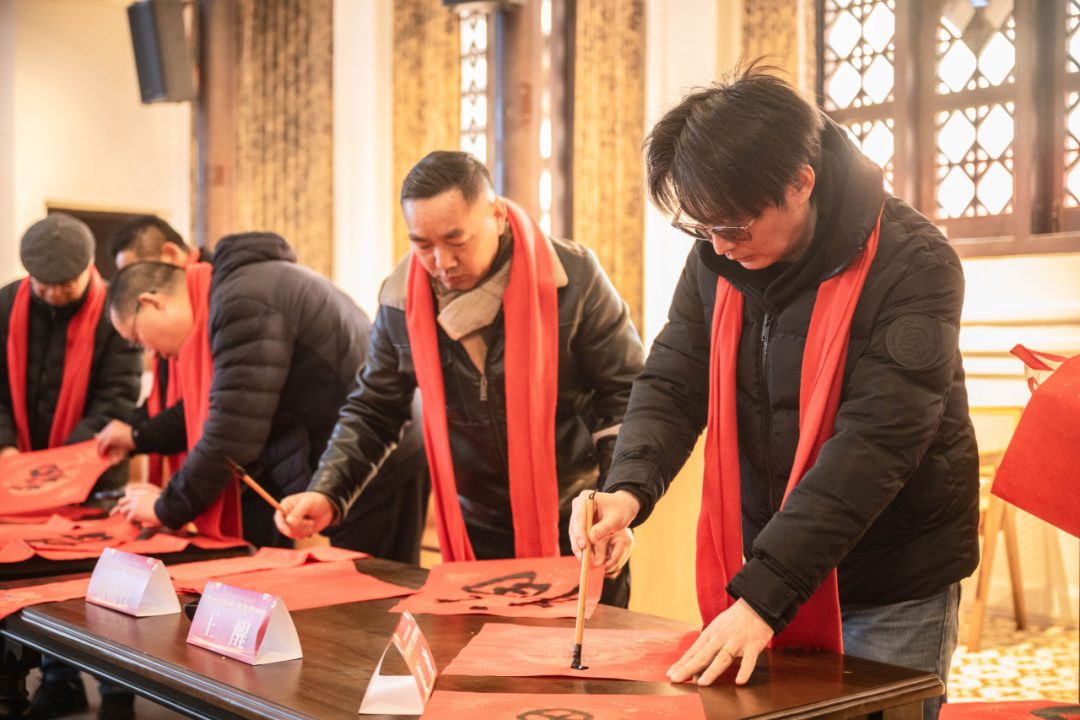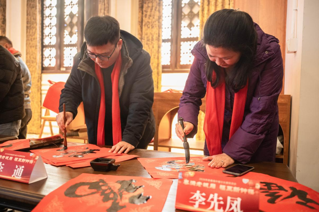 搭起长桌,铺开红纸,来自民革常州市中山书画院、钟楼区书法家协会、市书协企业家分会、市书协新媒体分会的20余位书法家挥毫泼墨,下笔行云流水,或遒劲有力,或飘逸灵动,一幅幅寓意吉祥的春联、一张张饱含温情的“福”字,为参加新春庙会的居民群众送去新春祝福。